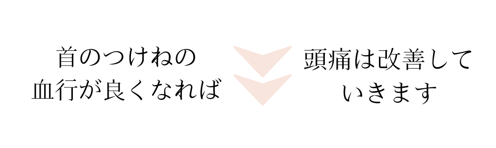 1:長年の姿勢の悪さ首の骨(第2頸椎)の少しのズレ 2:過度のストレス(自律神経の乱れ) 3:体の冷え(血行不良)が原因で血液の急上昇(血管拡張)がおこり頭痛が発生します