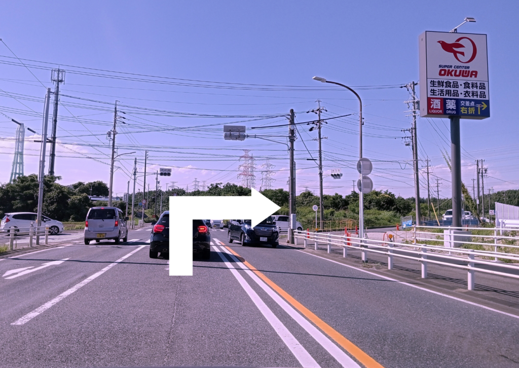 オークワ知多店の「岩之田」交差点を右折