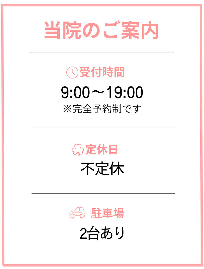 はい、当院は完全予約制となっております。お電話、ライン、インスタグラムよりご予約ください。